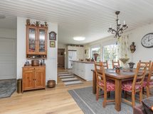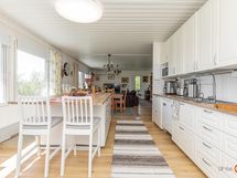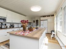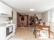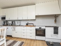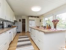 - Jääkaappipakastin, keraaminen liesi, liesituuletin huippuimuri, astianpesukone, kaapistot, kiinteät valaisimet, pöytätasojen materiaali laminaatti. Puuhella ja keittiösaareke.