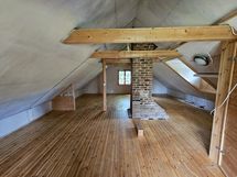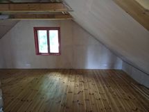 - Harjakatto, ehjä peltikatto, katossa paksu ekovillakerros estämässä lämmönkarkaamista.