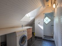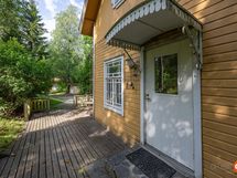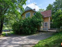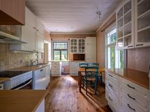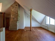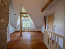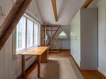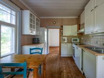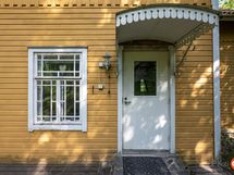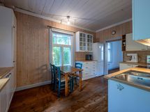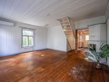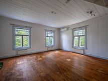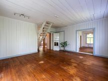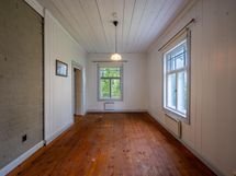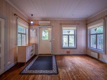 Tässä kodissa on tilaa ja avaruutta. Sisäänkäynti taloon on valoisalta kuistilta, joka on rakennettu myöhemmin kuin talo itsessään, joka on n. vuodelta 1920. Talon alakerrassa sijaitsevat keittiö, ruokailutila ja iso olohuone varaavine kaakelitakkoineen. Materiaalit on mietitty talon ikään ja arvoon sopiviksi. Lattiat ovat paksua lankkua ja seinät ovat myös komeaa lankkua, joka on tarjoituksella tehty niin, että se näyttää alkuperäisen kaltaiselta. Katot ovat myös upeat vanhat puukatot. Alhaalla on lisäksi pieni toimisto/makuuhuone ja wc. Yläkerrassa on kolme reilun kokoista makuuhuonetta, iso aulatila, wc ja kodinhoitohuone, jossa on myös suihku.