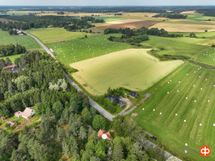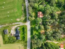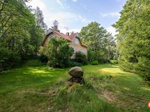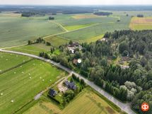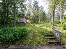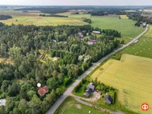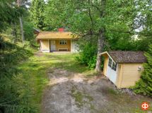 Rinteeseen rakennettu päärakennus, jonka ikkunat avautuvat sekä vastapäiselle peltoaukealle, että omalle vehreälle tontille. Lisäksi tontilla on ulkorakennus, jossa on sauna ja saunatupa takkoineen, puuvaja ja autotalli. Tämän lisäksi on vielä toinen pihavarasto, leikkimökki ja vanha saunarakennus. Tontilla on kalliota, nurmialuetta ja paljon istutuksia ja puita.