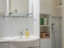 Varustus: lattialämmitys, suihku, kiinteät valaisimet. Varustus: lattialämmitys, peilikaappi, bidee-suihku.