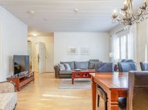 Lattia: Keittiössä: parketti. Pesutiloissa: laatta. Erillisessä WC:ssä: laatta. Olohuoneessa: parketti. Makuuhuoneessa: parketti. Saunassa: laatta. Kodinhoitohuoneessa: laatta. Seinät: Pesutiloissa: kaakeli. Erillisessä WC:ssä: osalaatoitus. Olohuoneessa: tapetti. Makuuhuoneessa: maalattu, tapetti. Saunassa: puu. Kodinhoitohuoneessa: maalattu.