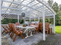 Sähköliittymä. Muuta kauppaan kuuluvaa: Viihtyisä katettu pergola.