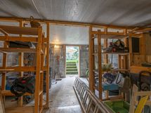 Kuvaus: Kellarivarasto noin 30 m² ja käyttöullakko autotallin päällä.vaatehuone