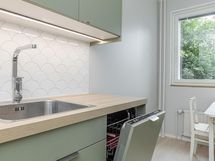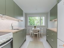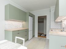 - Jääkaappipakastin uusittu 2022, sähköliesi, astianpesukone uusittu 2025, kaapistot, kiinteät valaisimet. Vuonna 2025 remontoitu tyylikäs keittiö. Kaapistojen rungot, ovet ja tasot sekä välilaatoitukset uusittu. Samalla vaihdettu lattiamateriaali laminaatiksi ja seinäpinnat maalattu. Kaapistot kahdella seinustalla. Keittiö omana tilanaan erillään olohuoneesta. Keittiössä hyvä tila arkiruokapöydälle ja reilunkokoisessa olohuoneessa paikka suuremmalle vierasruokapöydälle. Keittiön ikkunasta näkymä Salon torille johtavalle Torikadulle.