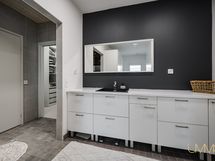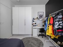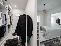 Päämakuuhuoneen yhteydessä oleva vaatehuone toimii käytännössä tilavana pukeutumishuoneena.