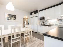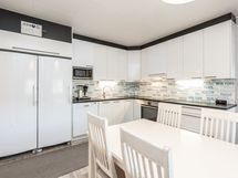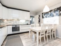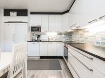 - Keittiön varusteet: Jääkaappipakastin, liesituuletin, astianpesukone, liesi ja uuni (Kiertoilma). Liesi: Induktioliesi. Työtason materiaali: Laminaatti.
