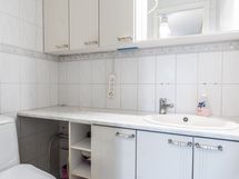 - Pesutilojen varusteet: WC-istuin, lattialämmitys ja suihku. Erillisten WC:n lukumäärä: 1. Erillisen WC:n varusteet: WC-istuin, peilikaappi, allaskaappi ja bidee-suihku.