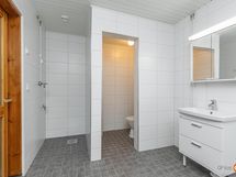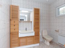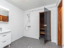 - Sauna, sähkökiuas, kylpyhuone, erillinen wc 3 kpl, suihku 2 kpl, toinen makuuhuoneen yhteydessä, peilit, peilikaappi, kaapit, allaskaappi kph:ssa ja wc:ssä, pesukoneliitäntä kph:ssa, lattialämmitys kph:ssa, kiinteät valaisimet. Tilavat v 2020 remontoidut kylpyhuone ja sauna. Kylpyhuoneessa sähkötoiminen lattialämmitys. Kph:n yhteydessä erillinen wc. Saunassa kuituvalaistus, lauteet lämpökäsiteltyä haapaa.