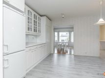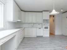 - Jääkaappipakastin, erillisuuni, liesitaso, keraaminen liesi, liesituuletin, astianpesukone, kaapistot, kiinteät valaisimet, pöytätasojen materiaali laminaatti. Keittiössä reilusti kaapistoja ja mukavasti laskutilaa. Keittiön yhteydessä on erillinen khh ja ruokailuhuone.