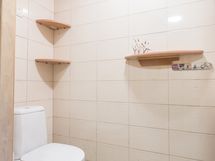 2. kerroksessa on pesutilavalmius. Erillisten WC:n lukumäärä: 1. Erillisen WC:n varusteet: WC-istuin, peilikaappi, pesuallas, allaskaappi, bidee-suihku ja lattiakaivo. Erillisen WC:n kuvaus: 1. kerroksessa on erillinen wc.