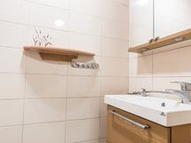 - Pesutilojen varusteet: Poreamme, suihkukaappi, peili, pesuallas, allaskaappi ja lattialämmitys. Pesutilojen kuvaus: 1. kerroksen pesutilat on saneerattu v. 2009.