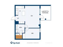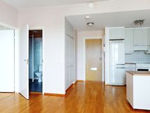 - Keittiön varusteet: Jääkaappipakastin, keittiösaareke (siirrettävä) ja liesituuletin. Liesi: Sähköhella. Työtason materiaali: Laminaatti.