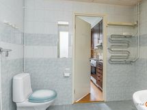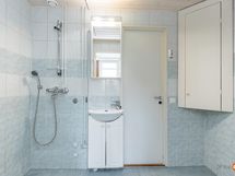 - Kylpyhuone, suihku, peilikaappi, allaskaappi, pesukoneliitäntä, kiinteät valaisimet.