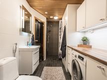 - Pesutilojen varusteet: Lattialämmitys, wc-istuin, allaskaappi, pesukoneliitäntä, peili ja suihku. Pesutilojen kuvaus: Remontoitu vuonna 2016. Erillisten WC:n lukumäärä: 1. Erillisen WC:n varusteet: WC-istuin, allaskaappi ja peilikaappi.