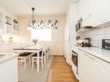 - Keittiön varusteet: Jääkaappi, erillinen pakastin, astianpesukone, liesi ja uuni. talotuuletin.