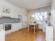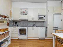 - Jääviileäkaappi, keraaminen liesi, liesituuletin, astianpesukone, kiinteät valaisimet.