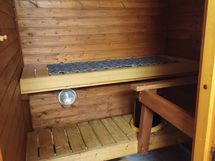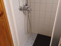 Alhaalla kylpyhuone/sauna/wc. Tilava suihkutila. Kylpyhuoneessa on lattialämmitys, mikä on iso mukavuustekijä. Kaksi isoa vaatehuonetta.