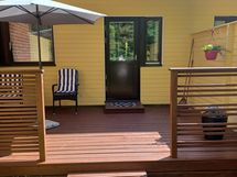 Rivitalo sijaitsee lähellä hyviä ulkoilumaastoja ja metsää. Omalla takapihalla on rauhallista ja suojaisaa. Asunto on osittain päätyasunto, sillä seuraava asunto nousee ylemmäs. Tässä 80m2 kolmiossa on mukavasti tilaa, sillä asunto on kahdessa kerroksessa. Makuuhuoneet ylhäällä ja alhaalla. Huoneet ovat hyvän kokoisia. Yläkerran makuuhuoneesta käynti takapihalle. Yläkerrassa avoimena tilana keittiö ja olohuone, mikä tekee tilasta avaran ja valoisan.