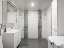 - Pesutilojen varusteet: WC-istuin, suihku (2 kpl), suihkuseinä, pesukoneliitäntä, lattialämmitys, pesuallas, allaskaappi, peilikaappi ja bidee-suihku. Erillisten WC:n lukumäärä: 1. Erillisen WC:n varusteet: WC-istuin, lattialämmitys, peilikaappi, pesuallas, allaskaappi ja bidee-suihku.