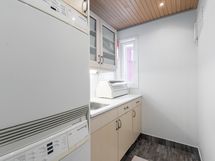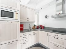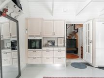 - Keittiön varusteet: Jääkaappipakastin, erillisuuni (Grilli- ja kiertoilmatoiminnot), liesi, liesituuletin (Huippuimuri katolla) ja astianpesukone (Integroitu). Liesi: Keraaminen liesi ja puuhella. Työtason materiaali: Kivi. Tupakeittiön kaapistot ovat mittatilaustyönä suunniteltu ja laadukkaasti toteutettu Puuprojekti Ky:n toimesta. Tasot ovat kiveä ja kaikki pinnat ja koneet on tehty vuonna 2009. Kulmakaappiin on toteutettu kattiloille mekanismi käytön helpottamiseksi.