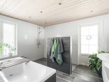 - 3 h + tupakeittiö + parvi + saunaosasto + khh + wc + 3 kpl vh + lasiveranta