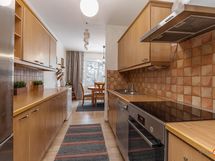 - Jääkaappipakastin, induktioliesi, liesituuletin, astianpesukone, kaapistot, kiinteät valaisimet.