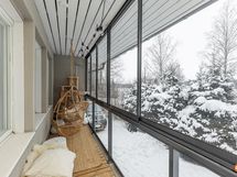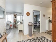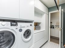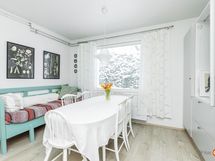 Kodin tilat käsittävät v. 2021 remontoidun ison keittiön, jossa mukavasti kaappi- ja tasotilaa sekä paikka isommallekin ruokapöydälle. Integroidut kodinkoneet ja aamiaiskaappikin kuuluvat keittiön varustukseen. Olohuoneesta on käynti lasitetulle parvekkeelle ja olohuoneen nurkassa v. 2020 uusittu tulisija lämmittää ja luo tunnelmaa. Kylpyhuone, sauna, wc ja kodinhoitotilat ovat modernit, kuten lähivuosina uusituilta tiloilta sopii odottaakin. Tilaratkaisu on onnistunut ja perheen arkea helpottaa tilaan tehty oma kulku ulkoa ja ns. kuraeteinen helpottaa niin lapsiperheitä kuin koirienkin omistajia. Makuuhuoneita on kolme kappaletta, jotka kaikki ovat piirustusten mukaan yli 10 m2. Toisessa päässä taloa on kellari, jossa varastotilaa.