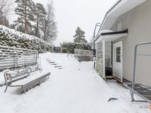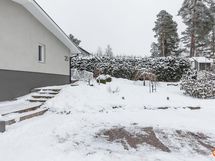 Tontti on oma ja pinta-alaltaan 998 m2. Tontti käsittää nurmikkoa, omenapuita, istutuksia sekä pihalle ajettaessa sorapihan, jossa mukavasti tilaa useammalle autolle. Talon kolmella sivulla kuusiaitaa, joka lisää omaa rauhaa. Talon sisäänkäynnin eteen on rakennettu iso suojaisa terassi, jossa kelpaa grillailla ja nauttia kesästä. Takapihalla erillinen kylmä varastorakennus.