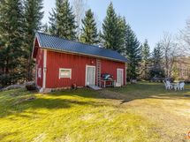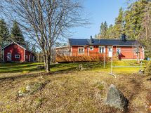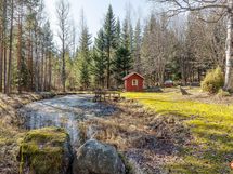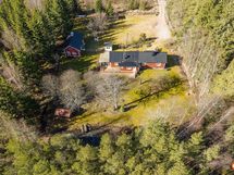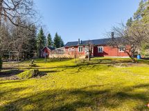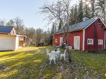 - punainen talo, pihasauna ja lampi omalla 3800 m² suojaisalla tontilla