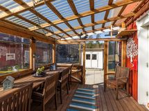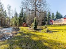 Kokonaisuuteen kuuluu iso 3800 m² pihapiiri. Pihalla on tilaa puuhailla ja pelailla, nauttia grillauksesta, viljellä kukkia tai vaikkapa rentoutua saunan jälkeen isolla terassilla. Ulkorakennuksessa on puulämmitteinen sauna ja toinen erillinen vanha sauna pihalammen rannalla.