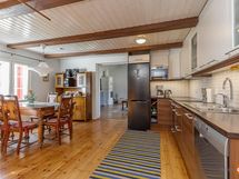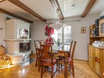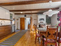 Talo tarjoaa kauniin, nykyaikaisen keittiön. Kolme tulisijaa tuovat lämpöä ja tunnelmaa - keittön takan yhteydessä myös leivinuuni. Olohuoneessa on korkea huonekorkeus, joka luo avaruutta ja antaa tilaa hengittää.
