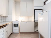 - Liesi: sähköliesi. Kylmäsäilytys: jääkaappi. Varustus: liesituuletin, astianpesukone, kiinteät valaisimet.