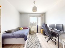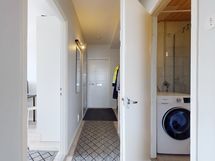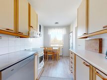 Keittiö on varusteltu nykyaikaisilla laitteilla, kuten jääkaappi-pakastimella, keraamisella liedellä ja astianpesukone. Kylpyhuoneesta löytyy suihkun wc:n lisäksi pesukoneliitäntä. Kasi makuuhuonetta ja reilun kokoinen olohuone parvekkeella.