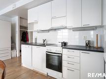 Keittiön varusteet: Jääkaappipakastin, liesi, liesituuletin ja astianpesukone. Liesi: Keraaminen liesi.