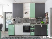 - Keittiön varusteet: Jääkaappi, liesi, astianpesukone ja liesituuletin. Liesi: Keraaminen liesi.