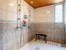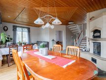 Pääsisäänkäynti keskikerrokseen, jossa on todella tilava keittiö, joka yhdistyy avoimena tilana ruokailutilaan ja siitä olohuoneeseen. Tätä avointa, yhtenäistä tilaa on lähes 50 neliötä! Olohuoneessa varaava tulisija leivinuunilla. Samassa kerroksessa lisäksi tilava kph ja kaksi makuuhuonetta. Yläkerrassa peräti viisi makuuhuonetta ja kph. Kellarikerroksessa valtava takkahuone, pesutilat, wc, tekninen tila ja varasto.