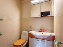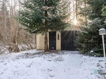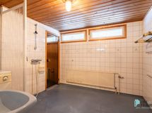 Sauna, sähkökiuas, kylpyhuone, erillinen wc, suihku, suihkuseinä, pesukoneliitäntä, kiinteät valaisimet.