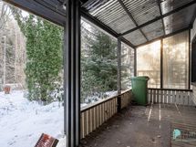 Rakennuksen päädyssä on myös varasto, tekninen tila sekä autotalli. Pihapiirissä lisäksi autotalli-varastorakennus, jossa paljon varastotilaa.
