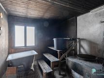 Sauna (ulkorakennuksessa), puukiuas, erillinen wc, suihku, peilit, pesukoneliitäntä, kiinteät valaisimet.