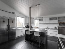 Lämmityksestä vastaavat sähkö, ilmalämpöpumppu, koko talon kattava lattialämmitys sekä varaava takka. Keittiö on varusteltu induktioliedellä, erillisellä jääkaapilla ja pakastimella sekä ylös nostetulla astianpesukoneella.