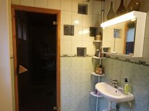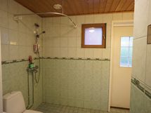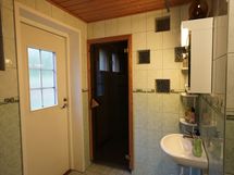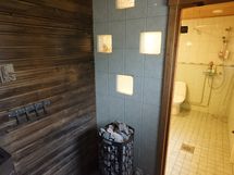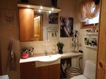 Pesutilojen kuvaus: Kylpyhuone on remontoitu v. 2004. Varustus: lattialämmitys, wc-istuin, suihku, peilikaappi. Varustus: pesukoneliitäntä, peilikaappi.