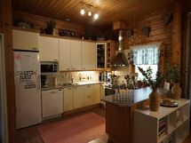 Liesi: keraaminen. Työtasot: laminaatti. Kylmäsäilytys: jääkaappi. Varustus: liesituuletin, astianpesukone. Keittiö on uusittu v.2004.