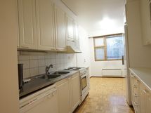 - Liesi: sähköliesi. Työtasot: laminaatti, metalli. Kylmäsäilytys: jääkaappi, pakastin. Varustus: liesikupu, astianpesukone, kiinteät valaisimet.