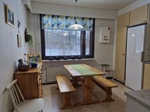 - Keittiö ja olohuone sekä takapiha lounaan puolella.