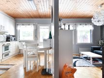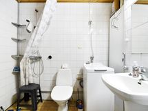 Sauna, sähkökiuas, kylpyhuone, suihku, peilit, pesukoneliitäntä, kiinteät valaisimet.