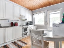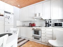 Jääkaappipakastin, lattialiesi, sähköliesi, liesituuletin, kiinteät valaisimet.