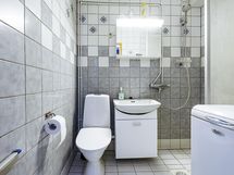 - Suihku, suihkuseinä, peilikaappi, allaskaappi, pesukoneliitäntä, kiinteät valaisimet. WC-istuin uusittu 2021.