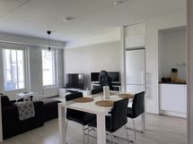 Alimman kerroksen kaksio isolla osittain lasitetulla terassilla