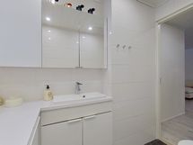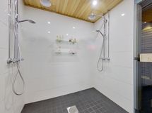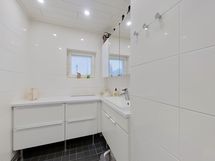 - Pesutilojen kuvaus: Kaksi sadesuihkumallista-suihkua. Katon kiinteä led-valaistus. Varustus: lattialämmitys, wc-istuin, suihku. Erillisen WC:n kuvaus: Yksi erillinen wc, jossa kaapisto- ja laatikostosäilytystilaa runsaasti. Lisäksi wc-istuin kylpyhuonetilassa. Katossa led-valaistus. Varustus: bidee-suihku.